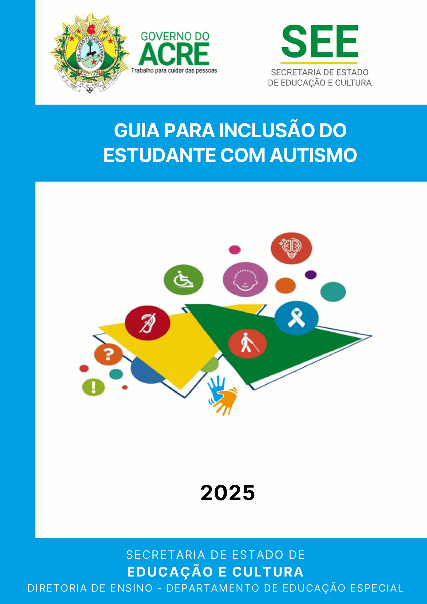 O Guia para Inclusão do Estudante com Autismo – 2025, foi elaborado em resposta aos desafios enfrentados pelas escolas na inclusão de estudantes com Transtorno do Espectro Autista (TEA). Este conteúdo se propõe a ser um complemento ao programa de formação continuada dos profissionais da educação estadual do Acre, oferecendo suporte adicional e orientações especificas. Este documento fundamenta-se em evidências cientificas embasadas em estudos e conhecimentos atualizados e nele são abordados: a caracterização do autismo, o estilo cognitivo de aprendizagem desses estudantes e diversas estratégias e recursos que podem ser utilizados na prática pedagógica diária. Além disso, inclui exemplos do cotidiano escolar, com o propósito de facilitar a compreensão e a aplicação das orientações, promovendo um ambiente mais acolhedor e inclusivo. O objetivo é contribuir para que as escolas da Rede Estadual de Ensino do Acre possam oferecer uma educação de qualidade, que respeite as singularidades e potencialidades dos estudantes com TEA, promovendo experiências acadêmicas significativas e de sucesso.