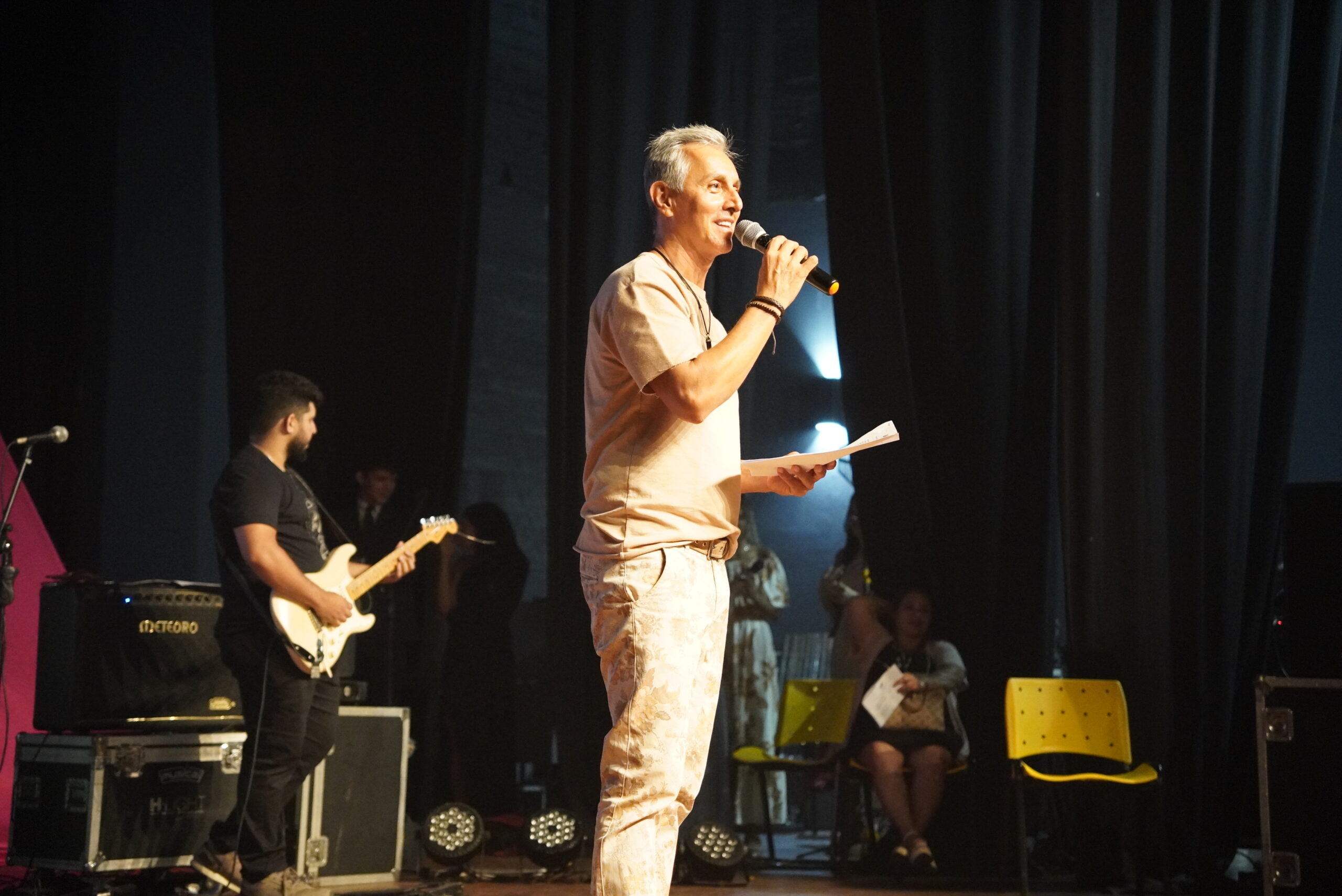 • Modelo estúdio-auditório, com palco, live e gravação audiovisual.